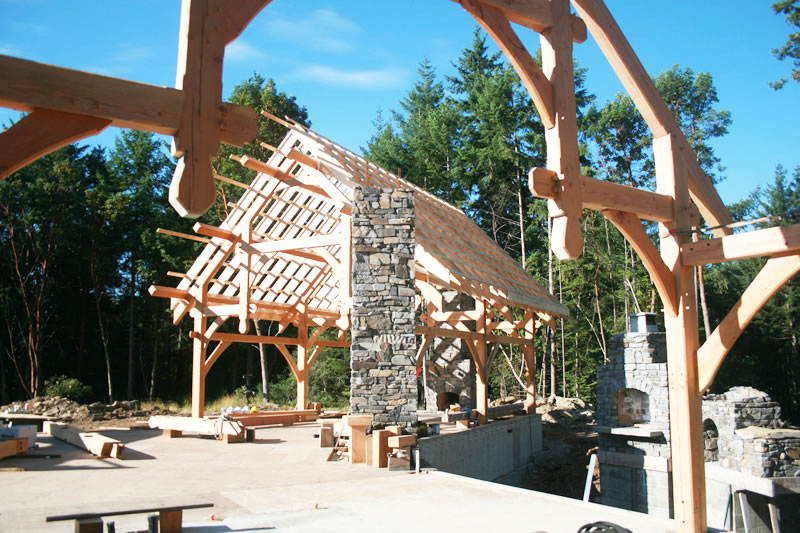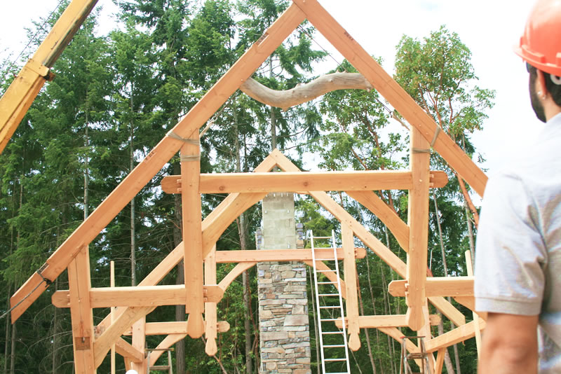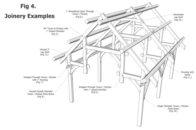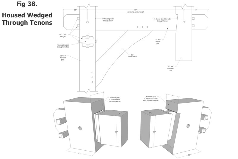 Hammer Bents form grand entrances and great rooms. A lot is demanded from this truss; firstly the joinery must be extremely accurate, this is a situation where even the thickness of pencil-lead can accumulate towards unacceptable joinery. Secondly the timber surfaces must be re-planeable without loosening the joinery. Removing layout lines, damage from test-fitting and discoloration from storage makes re-planing totally necessary. This last demand Eliminates All layout methods Except VIRTUAL Layout!
