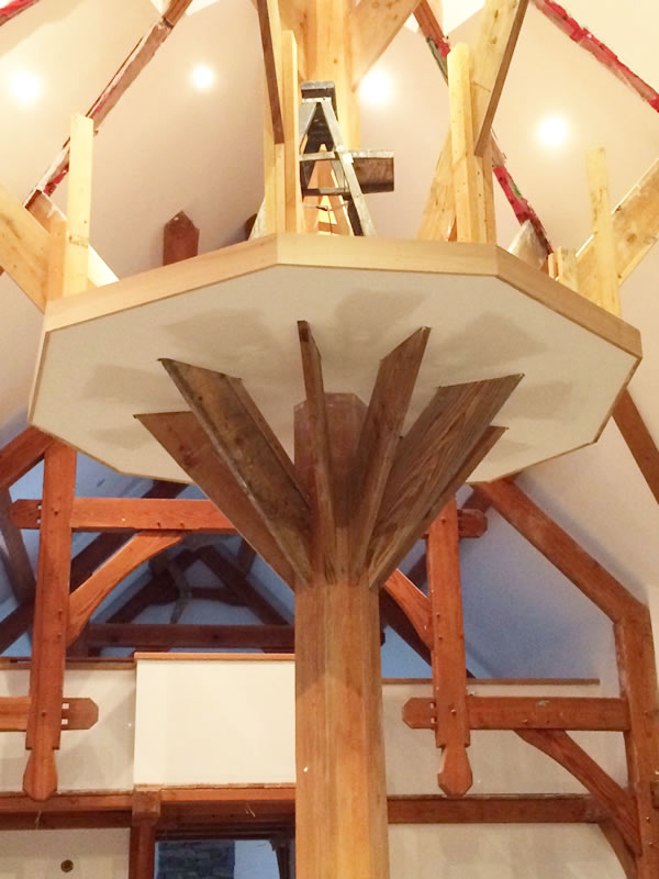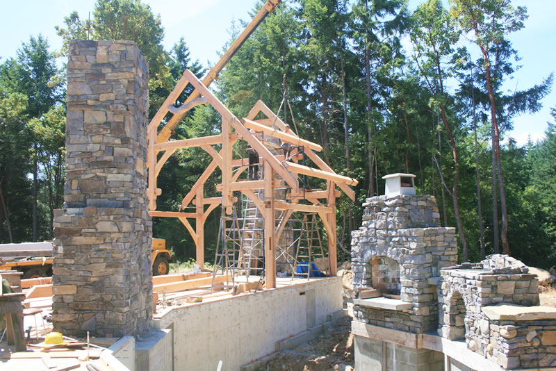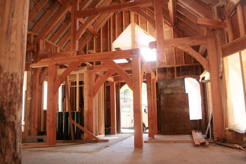 The Rumford fireplaces and rockwork were constructed in-place, over a few courses. The Hammer Bents were constructed on previous courses and stored, up to five years ago! When it was time, the timber frames were re planed, assembled and raised into position like a giant lego set.