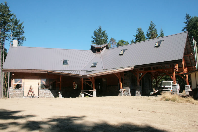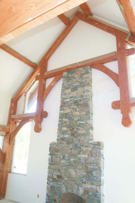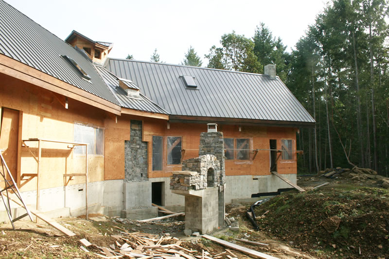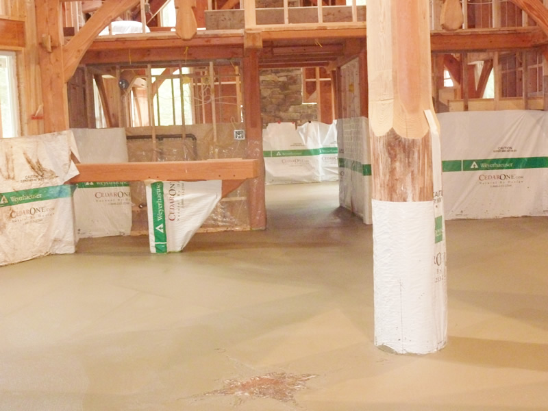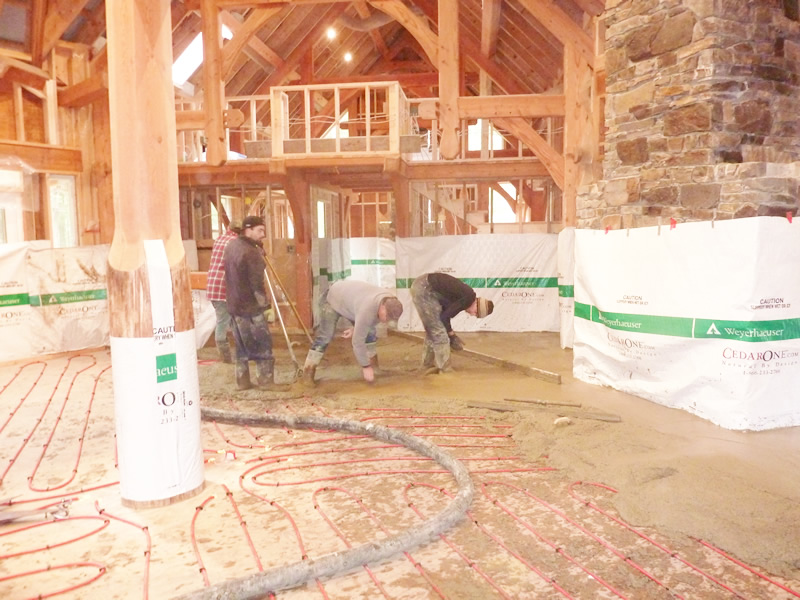 The rockwork and fireplaces are almost finished, the concrete floor has been poured and the in-floor heating system provides the most efficient method of heating vaulted spaces. We are planning on building heavy medieval style doors and will be designing and installing concrete countertops this summer in our Concrete Countertop workshop.